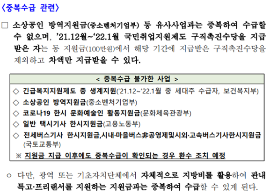 중복 수급 유의사항