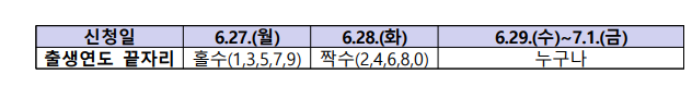 현장 신청 첫 이틀(3.24.~25.)은 출생연도 끝자리에 따라 홀짝제로 운영됩니다.